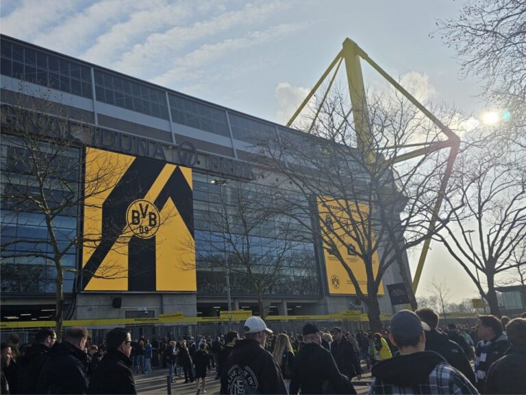 Die Hamburger Fans eröffneten das Spiel mit einem großen Banner, das sich über den gesamten Stehblock erstreckte. Man sah direkt: Die Fans waren bereit und wollten ihre Mannschaft nach vorne pushen. Ähnlich wie der BVB kam Hamburg mit bisher nur einer Niederlage in der zweiten Saisonhälfte in die Partie. Die erste Großchance hatte der BVB: Beier setzte sich nach einem Ballverlust der Hamburger schnell durch, konnte den Angriff aber nicht erfolgreich abschließen. Der HSV ließ sich davon nicht beeindrucken, sondern setzte immer wieder Akzente. Ein langer Ball und ein Stellungsfehler von Svensson führten zur Führung der Gäste. Das war viel zu einfach und irgendwie überraschend. Fortan waren nur noch die Hamburger am Drücker – es war ein wirklicher Wirkungstreffer. Der BVB bekam gar keinen richtigen Zugriff mehr auf das Spiel, Bälle versprangen und es zeigte sich eine ganz ungewohnte Fahrigkeit. Hamburg war dafür umso zielstrebiger. Folgerichtig fiel in der 25. Minute das 2:0 – doch Glück für den BVB, es war Abseits. In der 28. Minute keimte Hoffnung auf Besserung auf. Nmecha wurde im Strafraum gefoult und es gab einen Elfmeterpfiff. Doch dann meldete sich der VAR und nahm die Entscheidung zurück. Das brachte den HSV jedoch nicht aus der Fassung. Und so erzielten sie in der 38. Minute das verdiente 2:0, was für einen Schock auf der Tribüne sorgte – damit hatte man nicht gerechnet. Kurz vor der Halbzeit gab es für Dortmund die Chance auf den Anschlusstreffer. Erneut ertönte ein Pfiff und es gab Elfmeter für Dortmund. Dieses Mal ohne Meckern und Nmecha durfte antreten. Doch er schoss neben das Tor! Ein Raunen ging durch das Stadion – das Geschenk wurde nicht angenommen. Mit Pfiffen begleitet gingen die Mannschaften dann in die Pause.